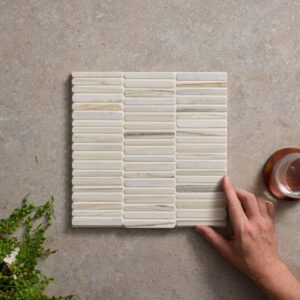 French Limestone is a soft limestone-look surface in the Ivory colourway, made from cement blended with mineral fragments to create gentle variation and a natural, tactile feel. Designed for internal floors and walls, the range allows a consistent look to flow throughout the home while introducing texture where needed. The collection is available in a matt finish across 600x1200mm, 300x1200mm, 200x1200mm, 600x600mm, 300x600mm, 300x300mm, French Pattern, 300x330mm Brickbond Mosaic, and 200x200mm Tumbled Fingers, supporting both open spaces and detailed areas. For applications requiring additional surface character, textured options including 600x600mm and French Pattern offer a more tactile finish, ideal for wet areas, entry zones and feature flooring. French Limestone, Ivory provides a refined, easy-to-spec limestone aesthetic with the flexibility to move seamlessly from large-format layouts to intricate design features within the same material family.